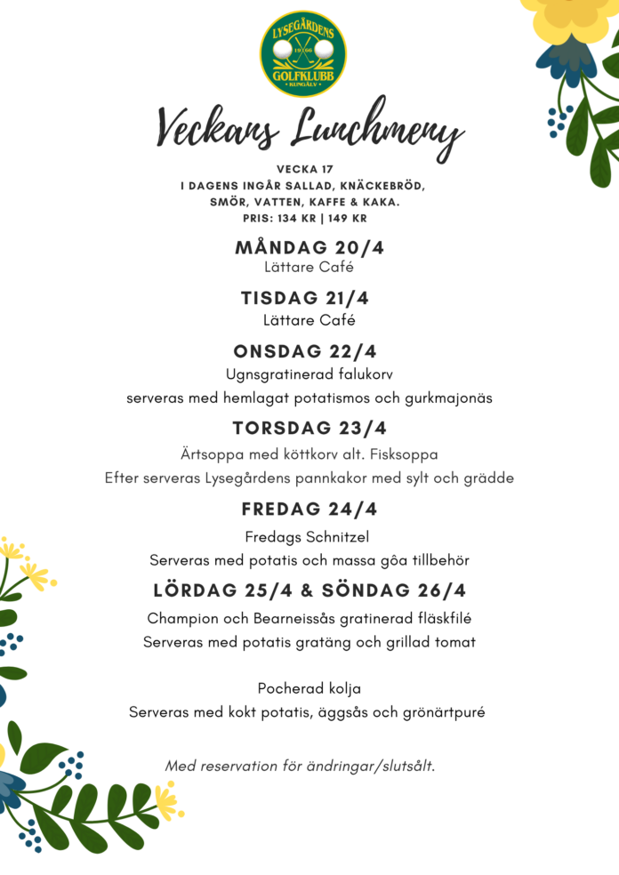 Lunch serveras kl 12 till 14.